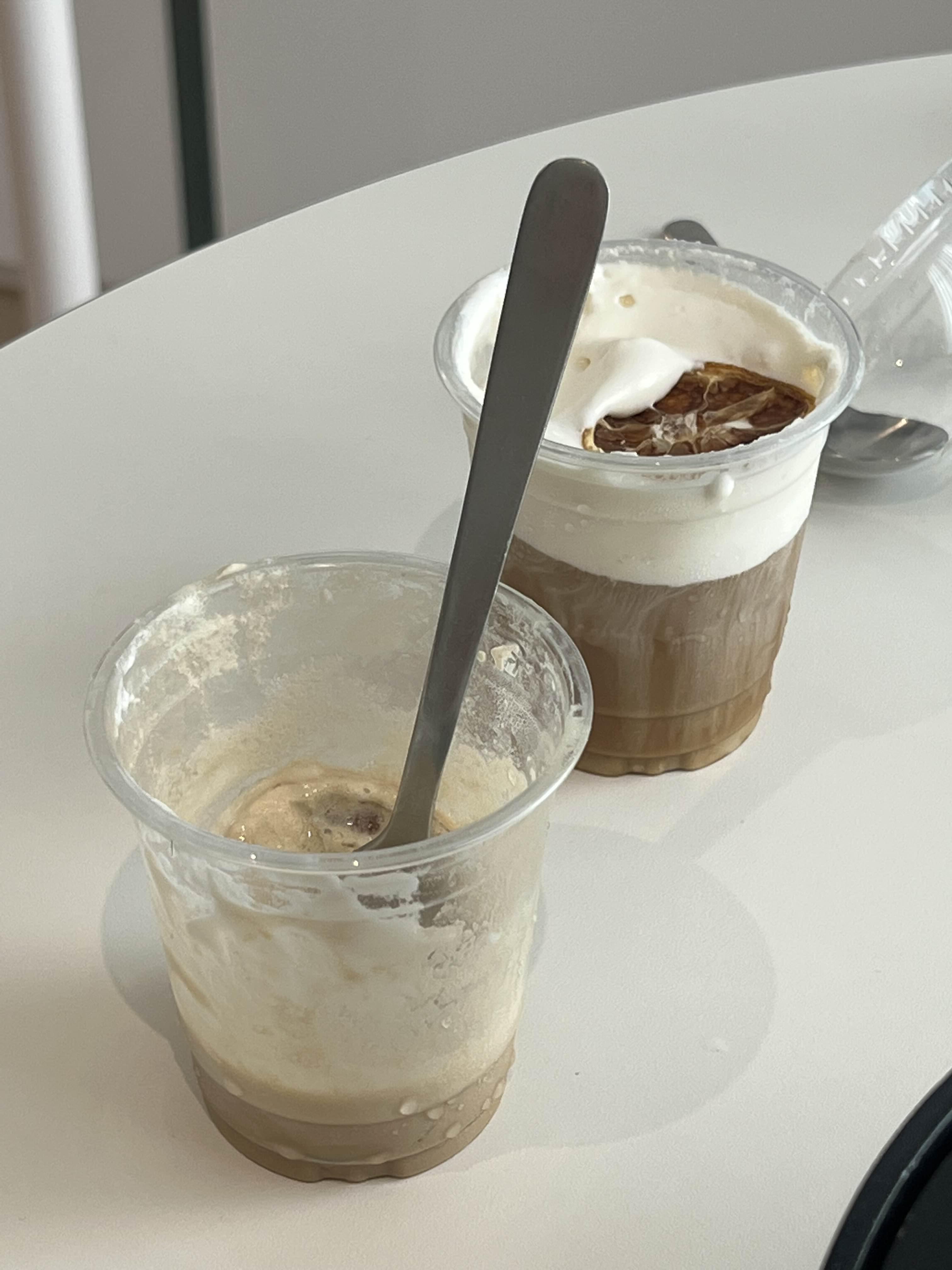 근데 집와서 생각보다 넘 맛있게 먹었다. 크림이 너무 쫀득해서 집와서 스푼으로 떠먹고 바닥까지 싹싹 긁어 먹음. 안의 얼음도 잘게 쪼개진 얼음이라서(알쥬 커피빈같은..그런 얼음) 온도도 매우 시원했고. 커피를 별로 좋아하지 않는 편인데도 커피 맛 자체도 맛있었다. 근데 이렇게 맛있게 먹고 자기 전 카페인 여파로 은근 멀미한 나는 카페인 취약계층...ㅠ