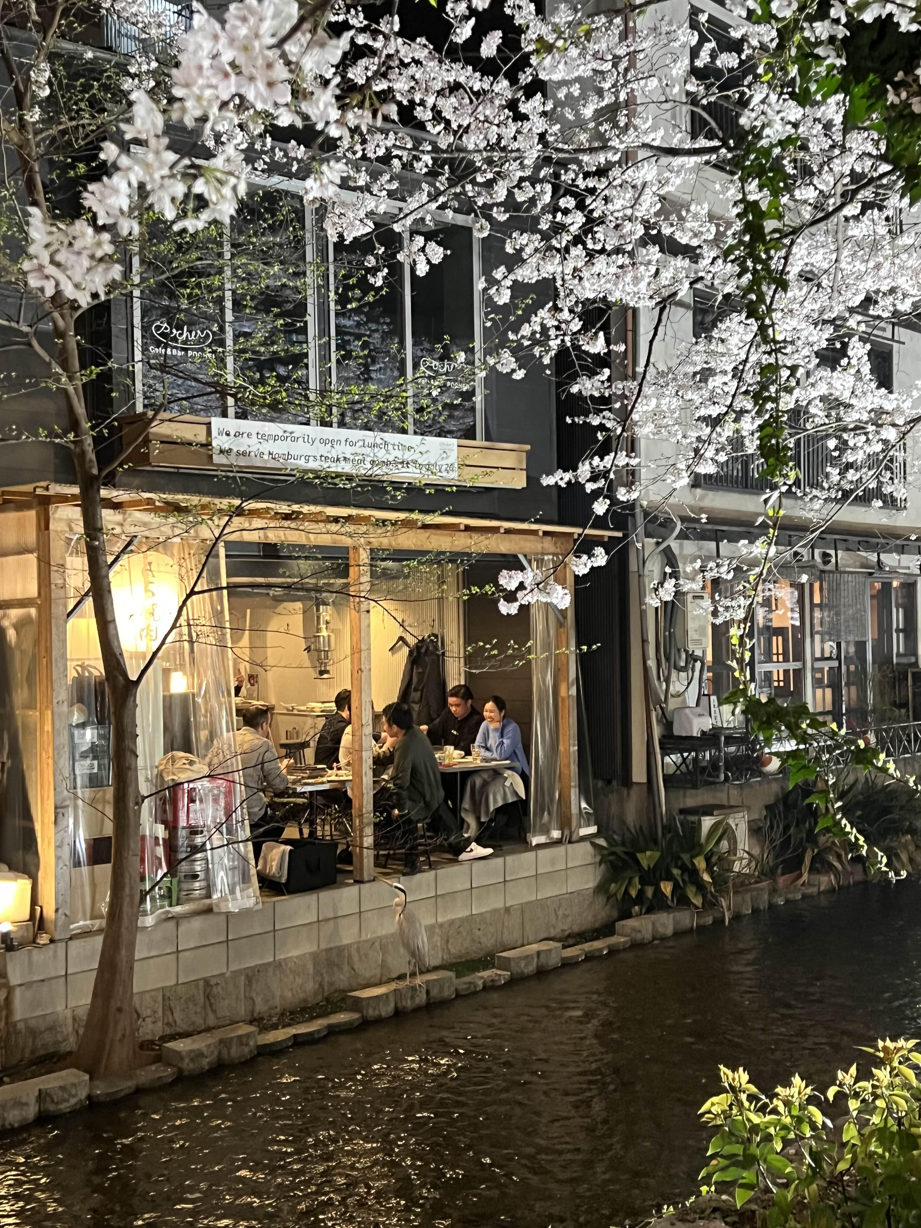 느리게 흐르는 물 위에 이제 막 떨어지기 시작한 교토 벚꽃을 감상할 수 있었다. 이시기 교토 날씨는 낮시간에는 외투 없이 얇은 긴팔정도 입는게 적당한 정도.