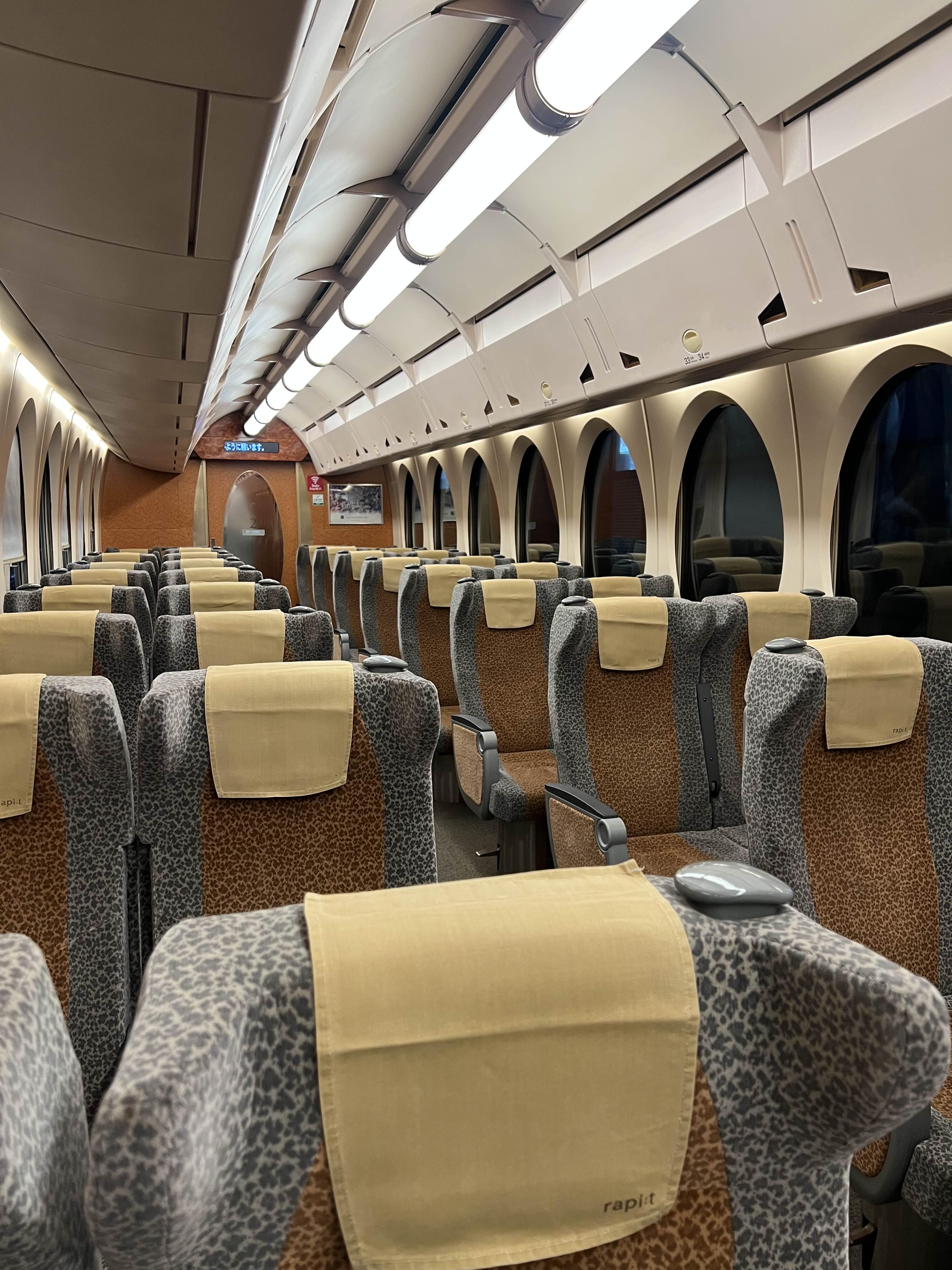 라피트 열차 내부는 이렇게 생겼고 양쪽에 위치한 창문이 상당히 커서 마지막 일본 풍경을 보기 좋았다.