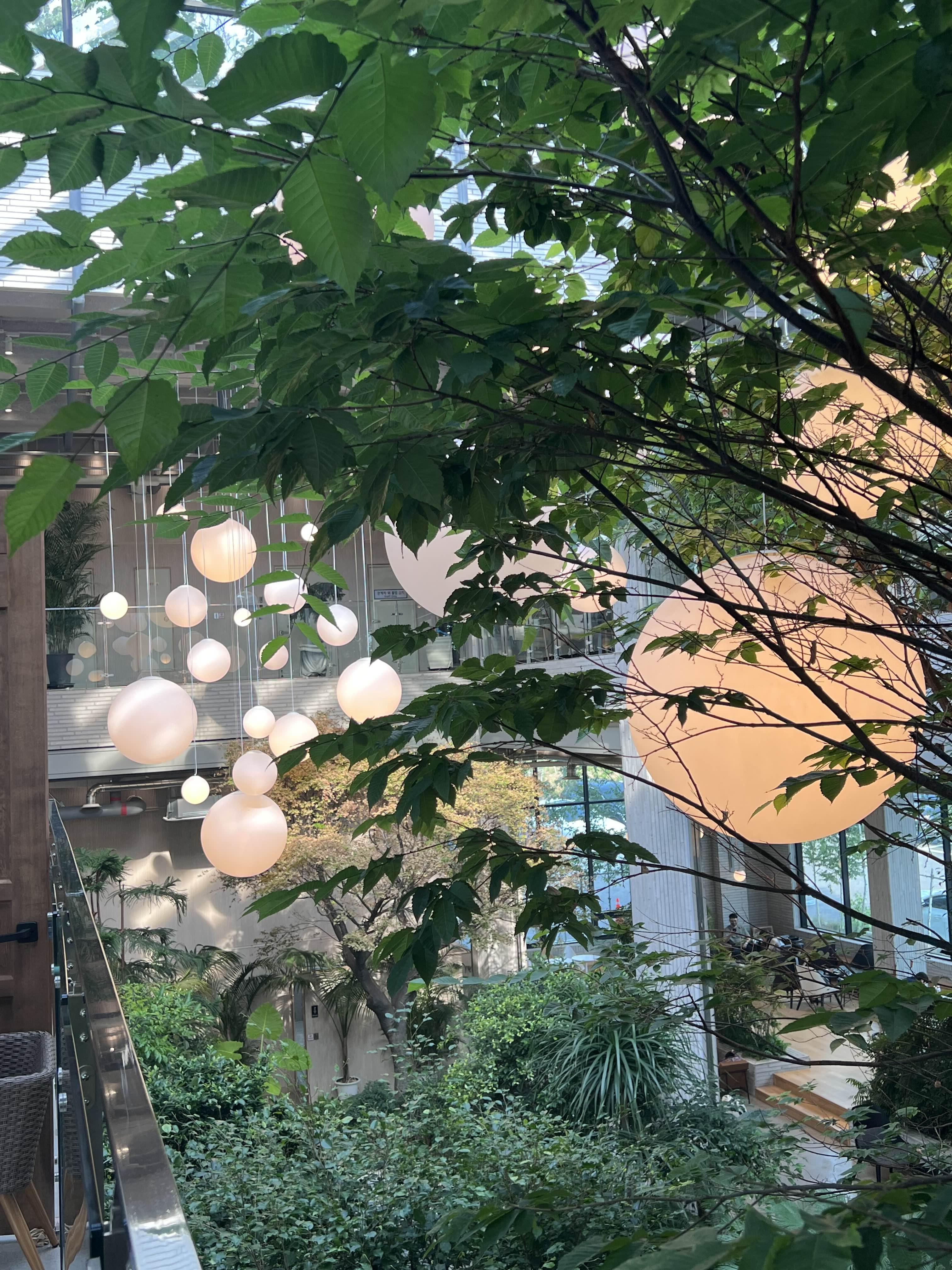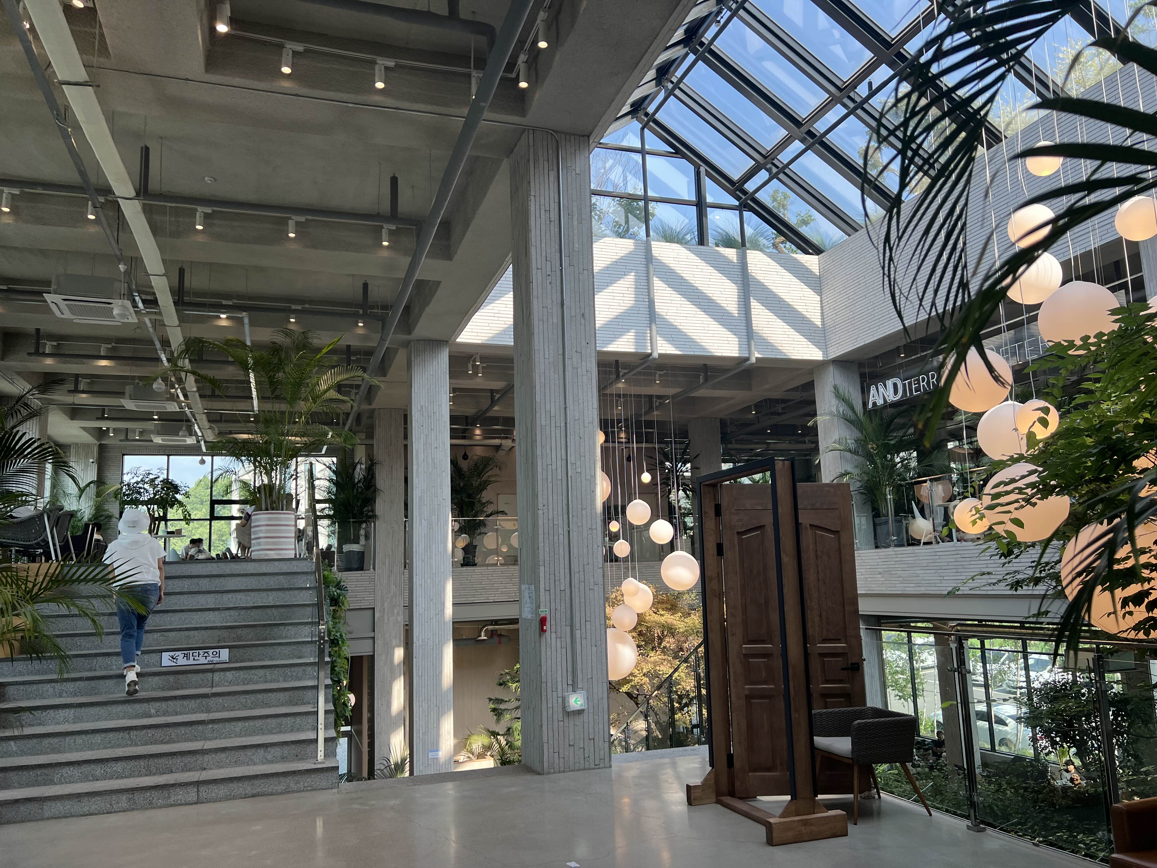 여름이라 그런지 일단 채광이 너무 좋았고(22년 7월 방문) 대형 식물과 가운데 분수로 인해 건조하지 않아 습도도 좋음.