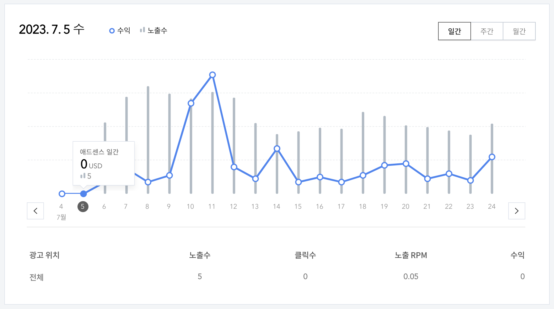 무효트래픽 해제돼서 광고는 걸리는데.. 수익이 진짜 안 난다;